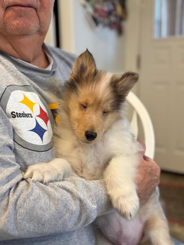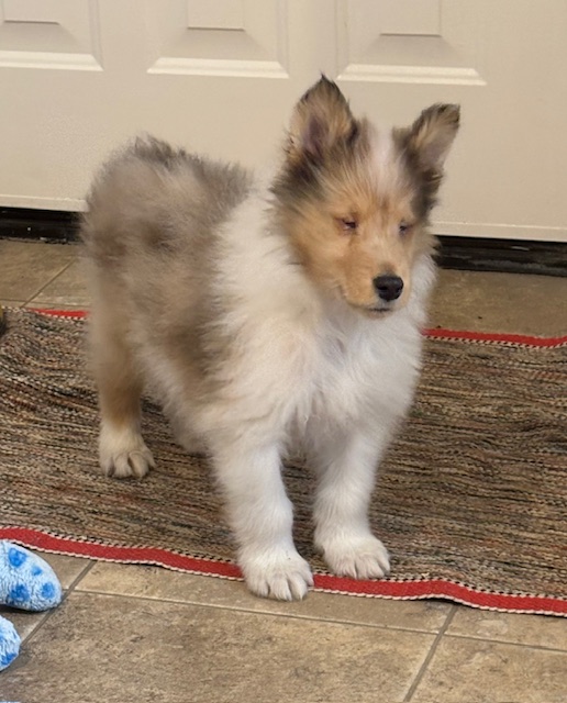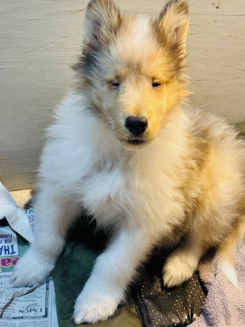 We have a beautiful pet Sable Merle male collie puppy available. He is 9 weeks old, UTD on age appropriate vaccinations, wormed, health check by veterinarian, eye check done by canine ophthalmologist. Must have a fenced yard and references.